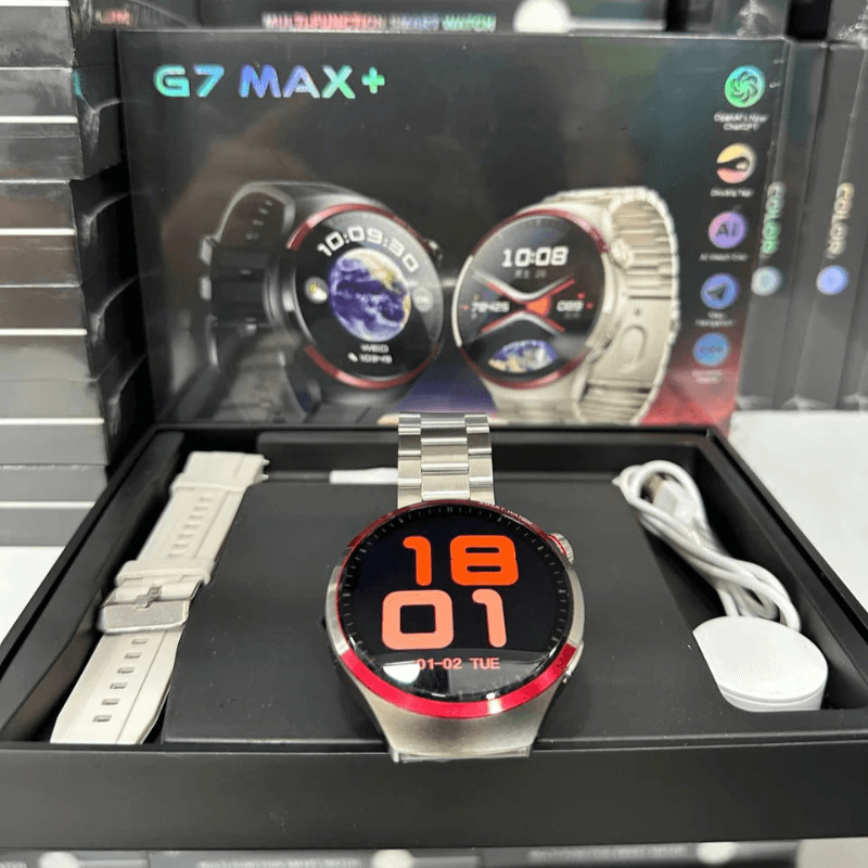 La Montre Connectée G7 MAX+ est une montre connectée haut de gamme combinant technologie, élégance et performance. Conçue pour les utilisateurs modernes, elle offre un large éventail de fonctionnalités santé, sportives et intelligentes dans un design raffiné.