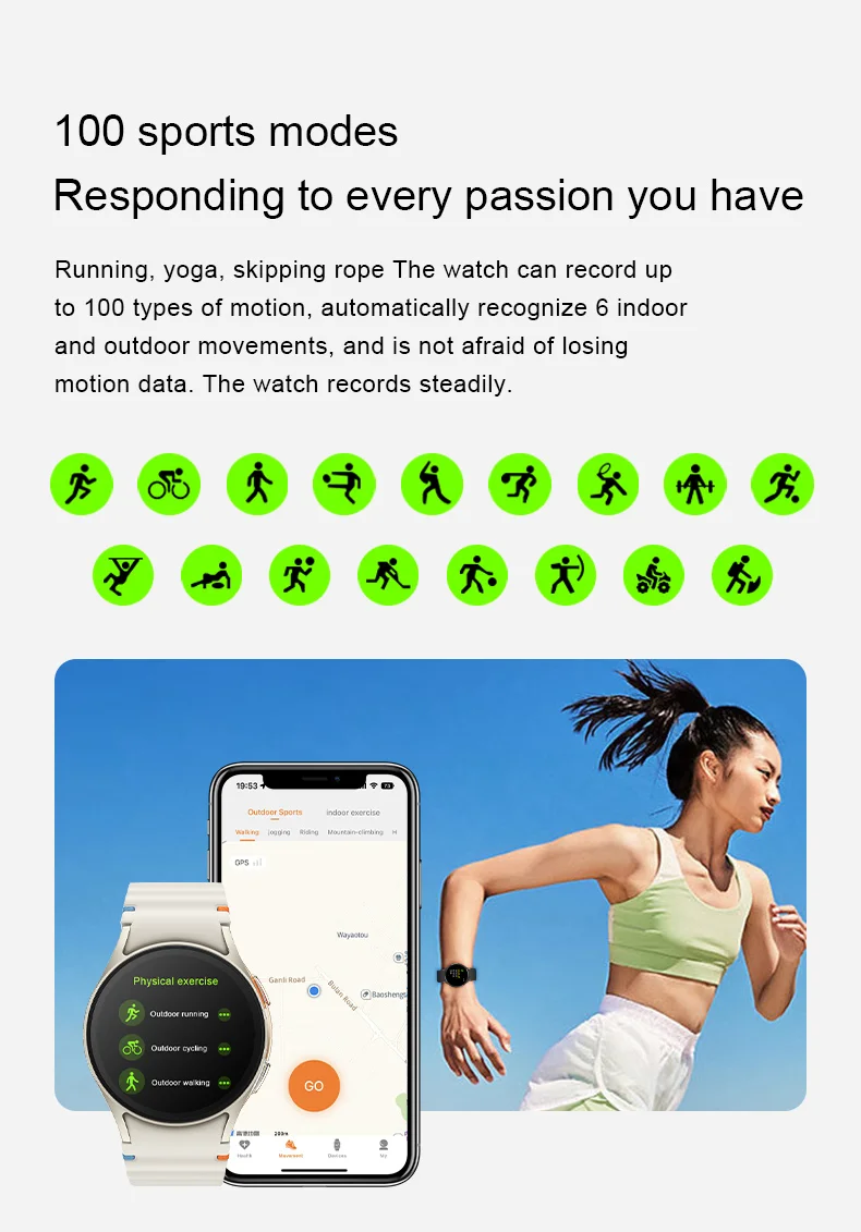 الـWatch 7 جاية بتصميم كيحاكي الساعات الراقية، بشاشة كبيرة HD ذات حواف رقيقة باش تشوف كلشي بوضوح، سواء فالنهار ولا فالليل. كتوفر على مجموعة ديال الfaces اللي تقدر تبدل بينهم غير بضغطة زر باش تعطي للساعة شكل جديد كل نهار.