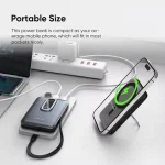 Ainsi, ce power bank est équipé d’une fonction de charge magnétique sans fil jusqu’à 15W, offrant une expérience simple et confortable pour les smartphones compatibles. La fixation magnétique assure une bonne stabilité pendant la recharge.